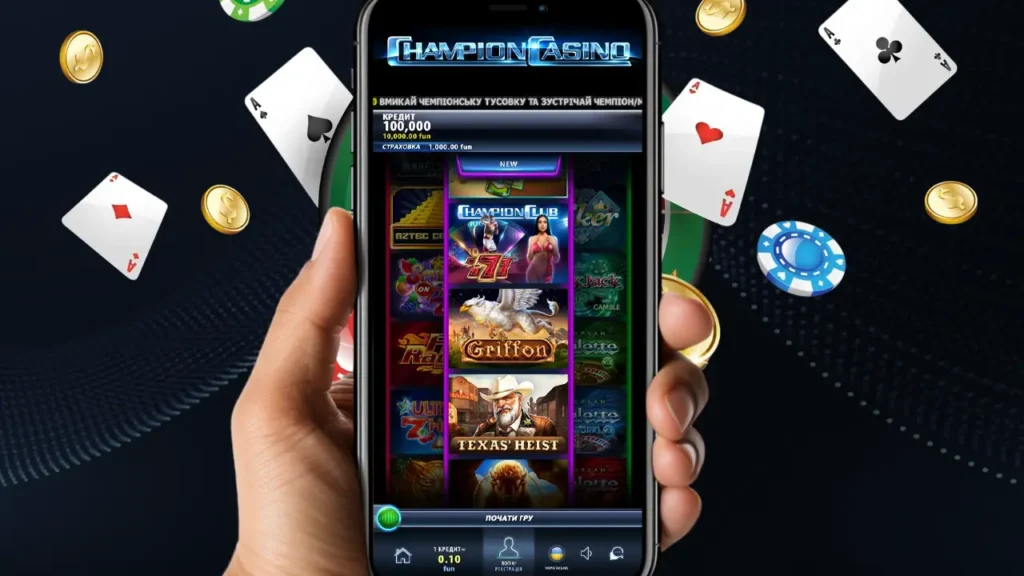 Казино Чемпіон доступне на смартфонах завдяки мобільній версії сайту. Інтерфейс адаптується під будь-який екран, а швидкість роботи не поступається десктопній версії.