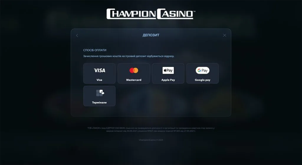 Чемпіон казино – це сучасна платформа для азартних ігор онлайн, що працює під офіційною ліцензією КРАІЛ. Бренд орієнтований на українських користувачів, пропонуючи широкий вибір слотів, настільних ігор, live-румів та щедрі бонуси. Champion casino забезпечує чесний і безпечний ігровий процес, стабільні виплати та підтримку 24/7.